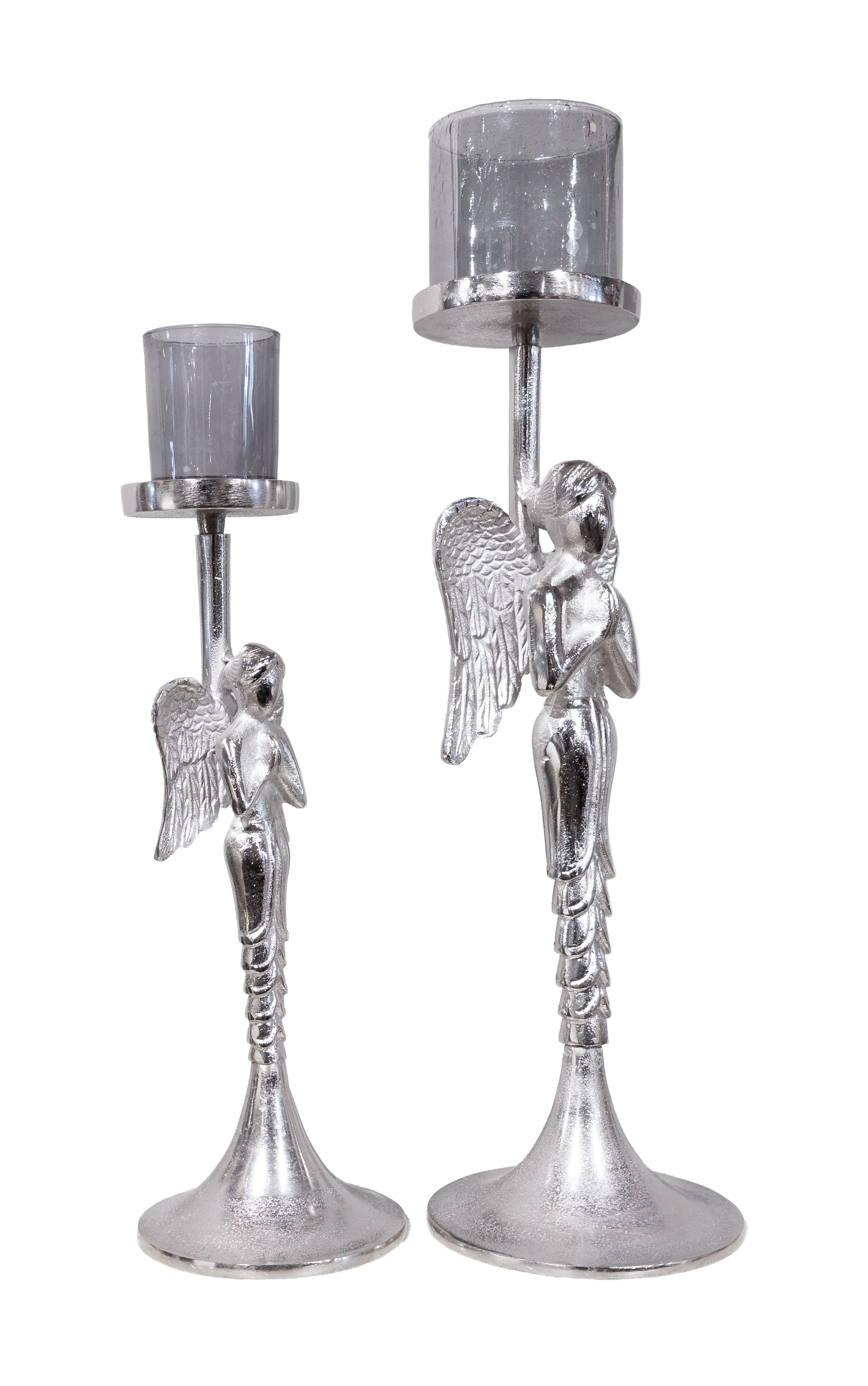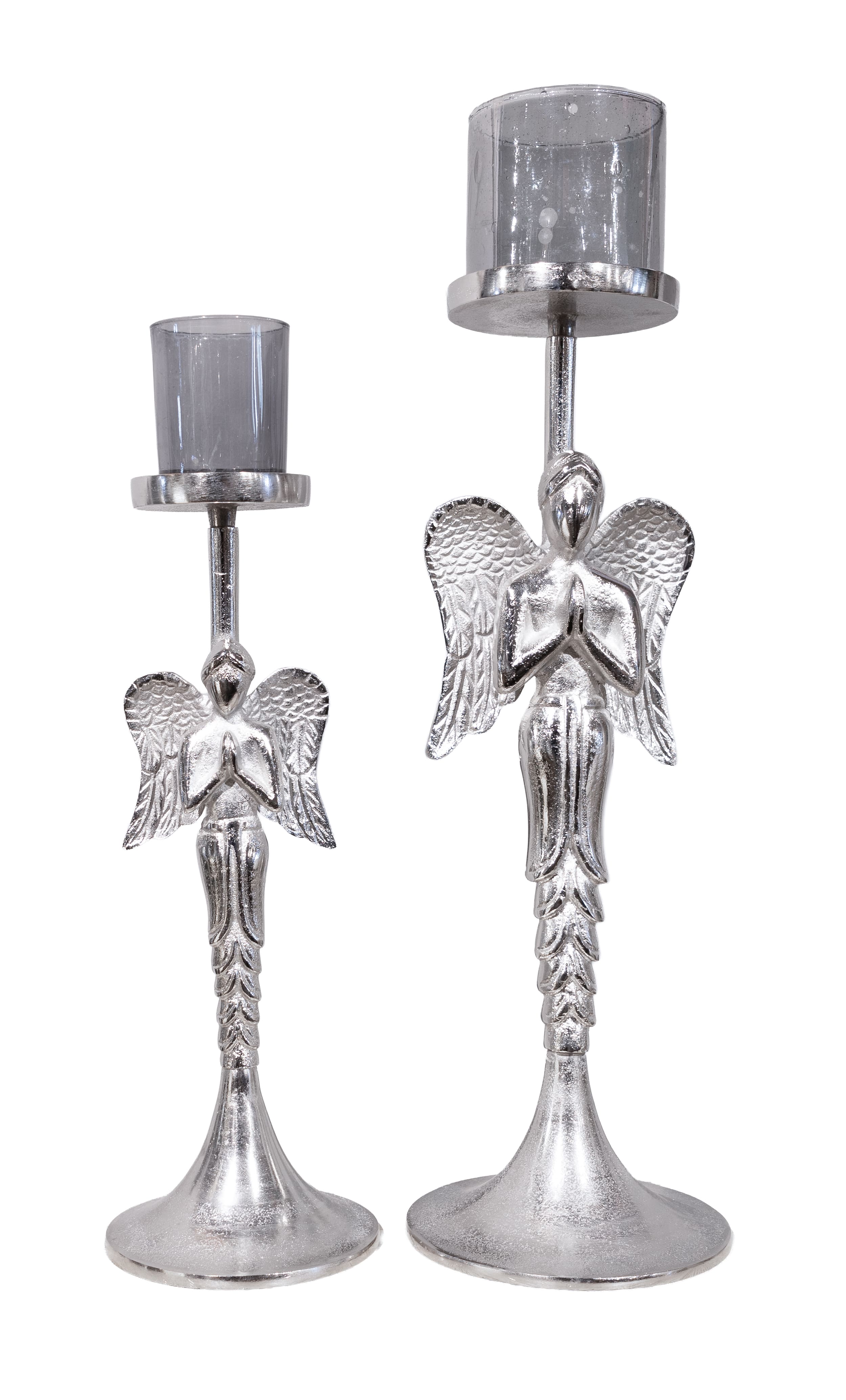 Kerzenhalter Engel Alu Nickel mit Glas