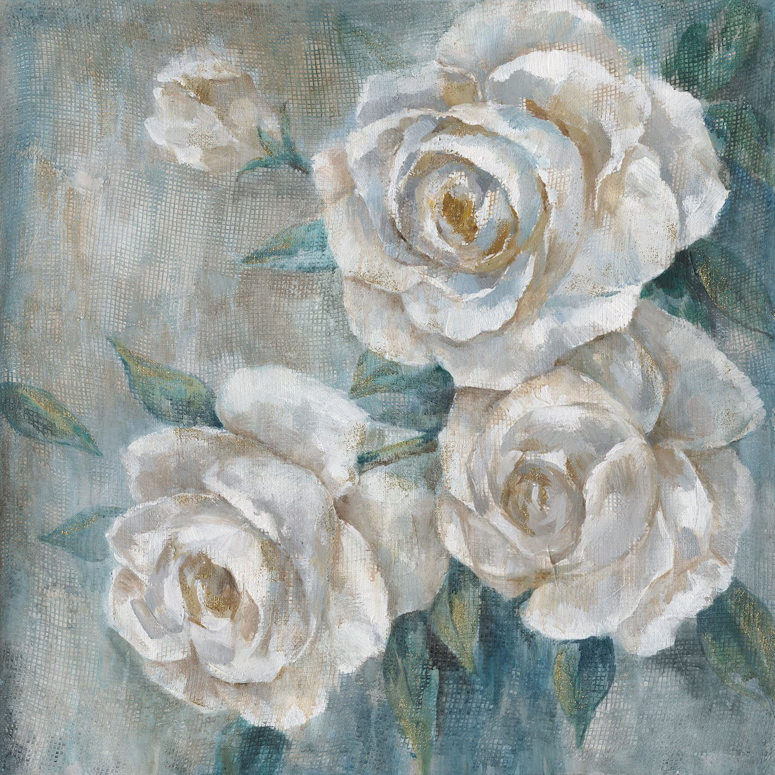 Ölbild weiße Rosen 70x70x3,5cm